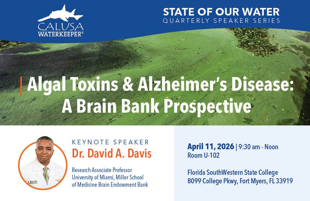 You are cordially invited to a special keynote presentation by Dr. David A. Davis of the University of Miami Brain Endowment Bank. Harmful algal blooms are on the rise, and our water systems are frequently affected by cyanobacterial blooms. These blooms produce toxins that cause neurodegeneration. At the same time, South Florida has the highest prevalence of Alzheimer’s disease in the United States. In this discussion, Dr. Davis will examine how exposure to algal toxins is impacting the health of residents in Florida.